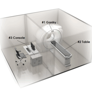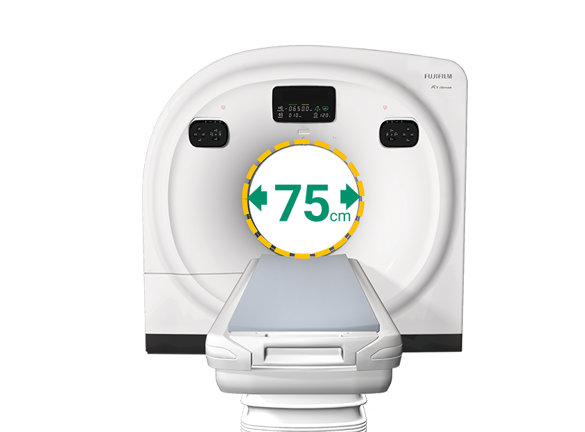 • 128 slice CT, 75cm wide bore, 500 lbs. patient weight table